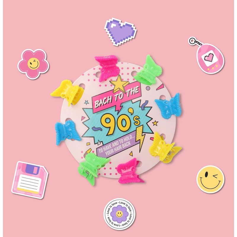 - CALLING ALL 90S BABES, if you’re planning a throwback 90s bachelorette party, then it’s time to turn heads with Pop Fizz Designs’ neon butterfly hair clips. Straight outta the 90s our butterfly hair clips are the perfect 90s themed party favors!