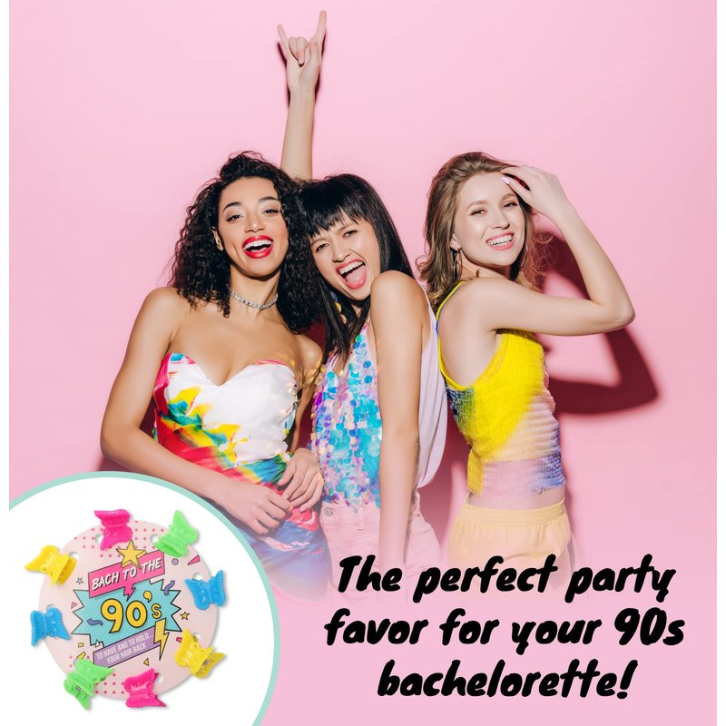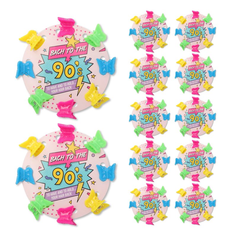 - BUTTERFLY CLIPS ARE, LIKE, TOTALLY AWESOME! Each card includes 8 plastic neon butterfly hair clips and is made with premium card stock, which reads “Bach to the 90s” The ultimate neon bachelorette party accessory your guests will love!