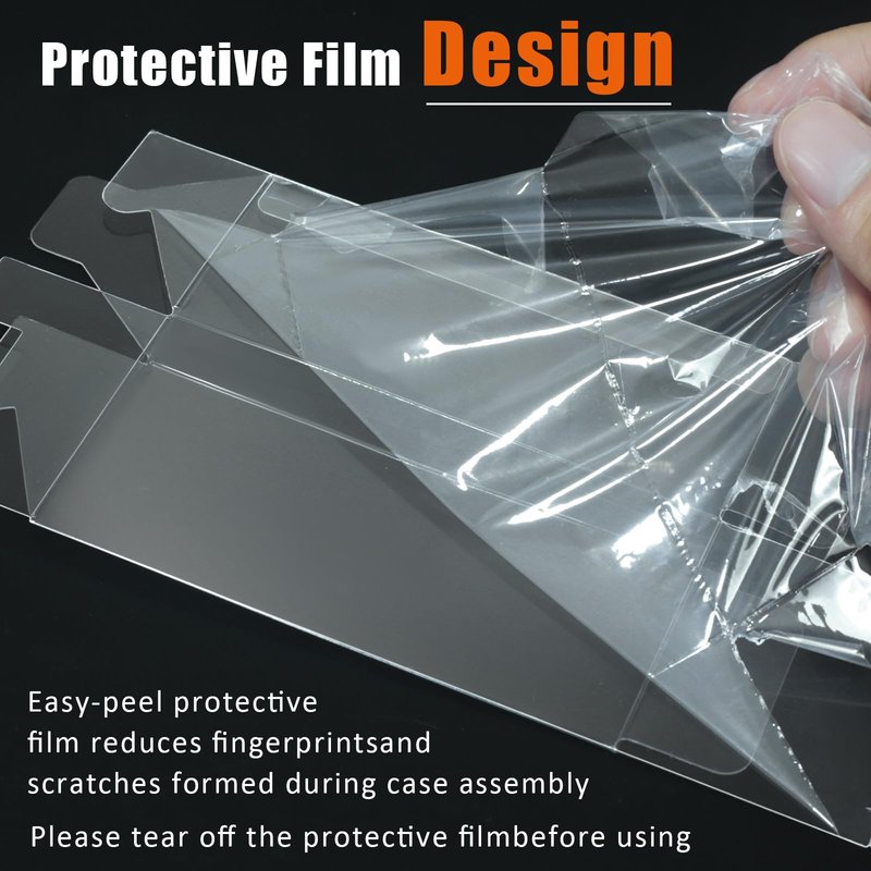 - 【𝗣𝗥𝗢𝗧𝗘𝗖𝗧𝗜𝗩𝗘 𝗙𝗜𝗟𝗠】- Each protector case is wrapped with a film that prevents the protector from scratches before using. Peel off the film to get the crystal-clear box.