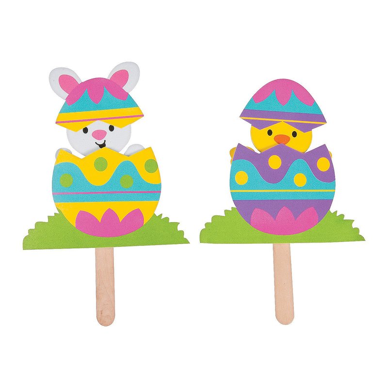 - Pass out these pop-up craft supplies for a fun DIY art activity to keep children busy before that big family dinner, or use them as Easter basket stuffers. These cute and easy-to-make crafts are cute additions to your Easter decorations when you put them in small bowls or potted plants. Includes self-adhesive foam pieces and wooden craft sticks. 6 1/4" x 10" All craft kit pieces are pre-packaged for individual use. Kits include instructions and extra pieces. Makes 12.