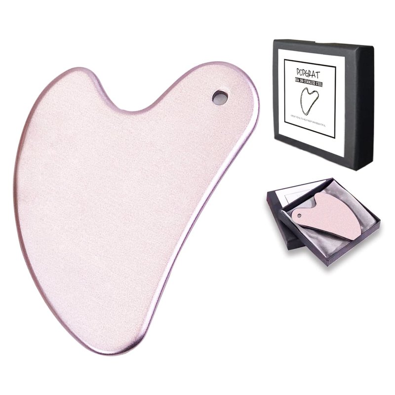 POPGRAT Metal Gua Sha Tools for Face, Guasha Facial Tool Lymphatic Drainage Skin Care Beauty Massager for Body Eyes Neck with Gift Box (Pink)