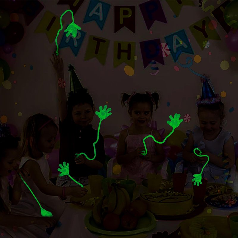 - GLOWING & GLITTER - 56PCS small sticky hands (3 different styles featuring 15PCS glow-in-the-dark sticky hands, 20PCS glitter sticky hands and 21PCS normal sticky hands), stick out in the dark, a hit at Halloween night.