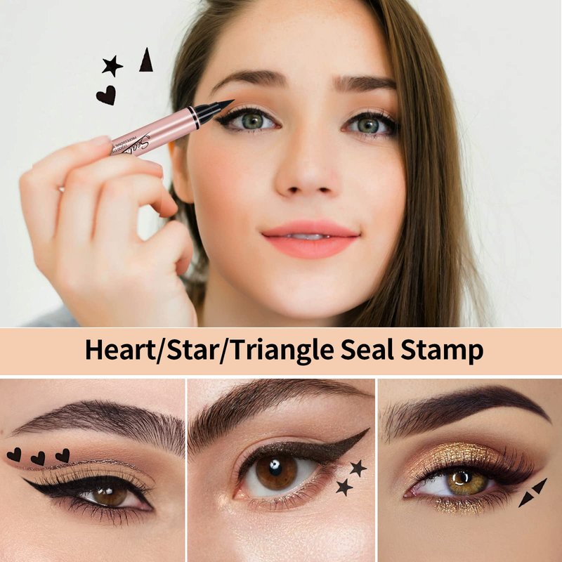 - ★【Package Includes】 The liquid eyeliner set includes 3 pcs stamp eyeliner in heart/star/triangle patterns and 2 eyebrow pencils in brown/black colors. Help you create charming big eyes and easy to match different make-up styles.