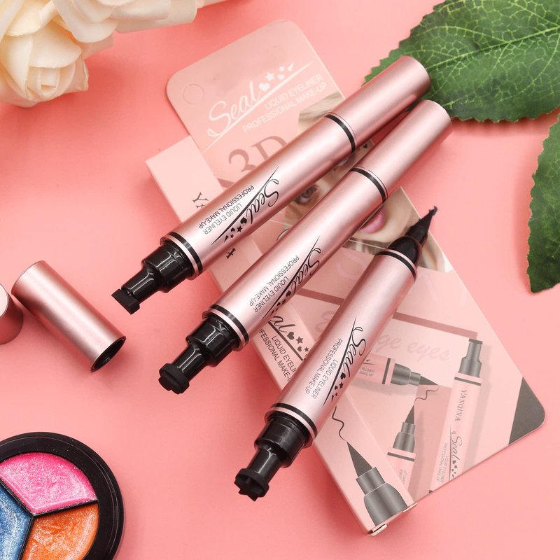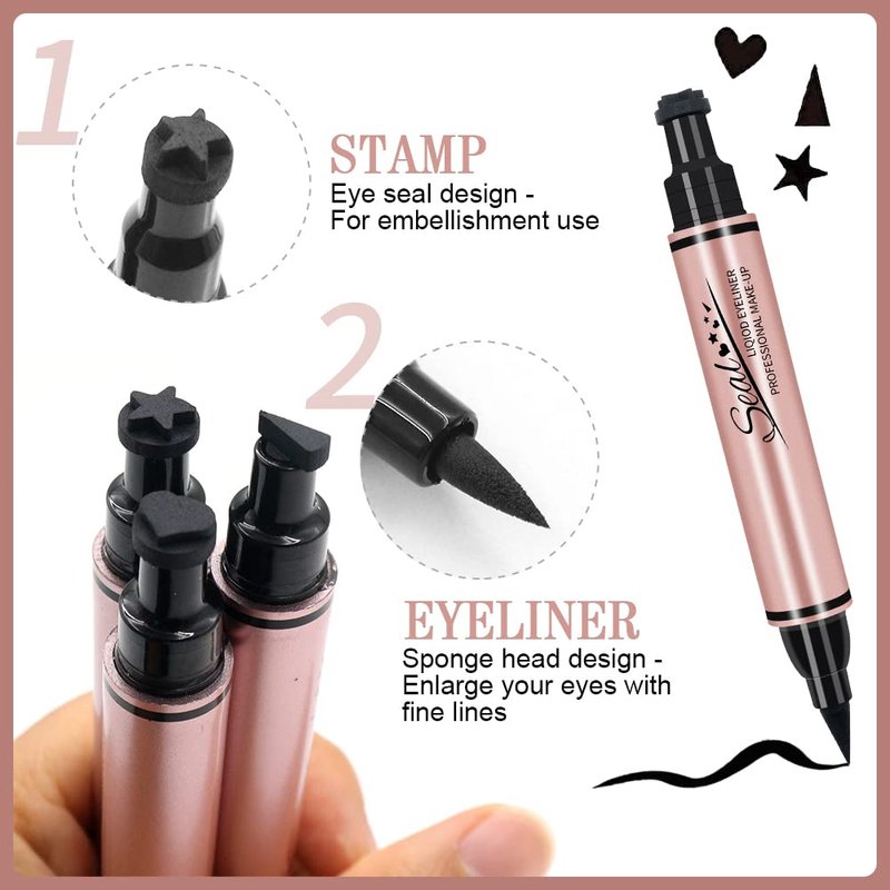 - One head is the liquid eyeliner pen, the other head is the eye stamp.