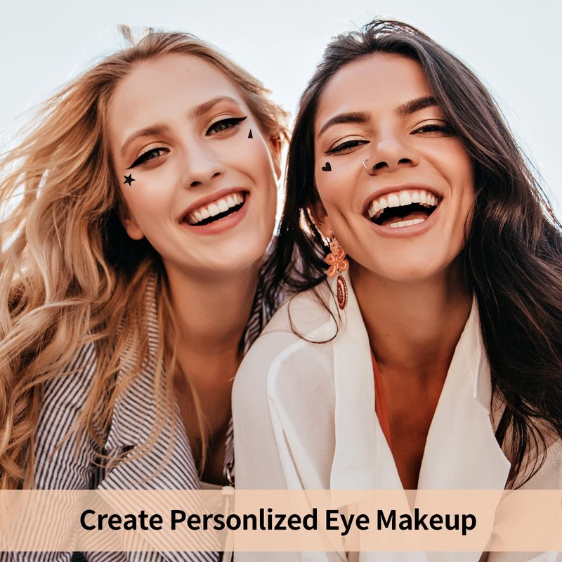 POPMISOLER 5 Pcs Liquid Eyeliner Pen Stamp Set, Dual Ended Black Eyeliner with Heart/Star/Triangle Shape Eye Liner Stamp Waterproof Long Lasting Stamp Makeup Eyeliner for Women Girls