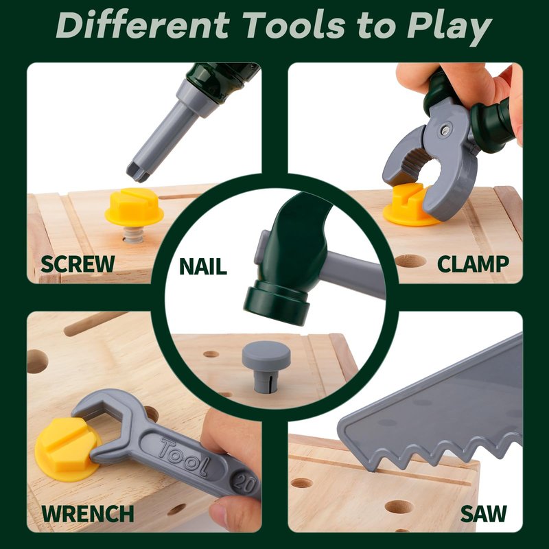 - Develop Skills Through Play: This tool toy not only sparks imagination and creativity but also helps toddlers develop fine motor skills and hand-eye coordination as they emulate construction work. It's an excellent way for kids to engage in cooperative play with friends or family