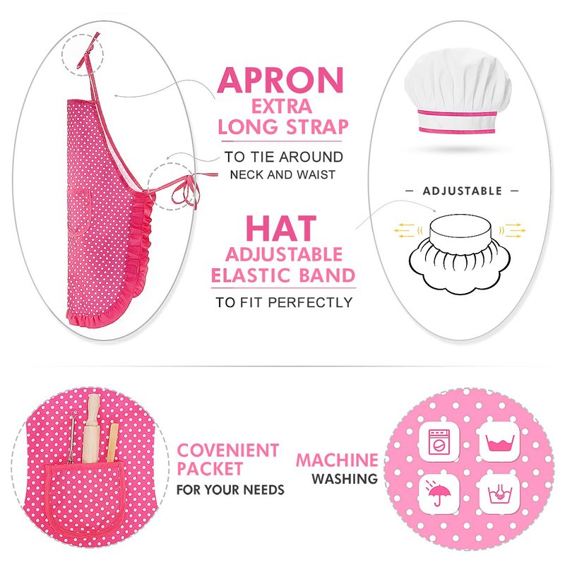- PARENT-CHILD INTERACTIVE GAME: Kids can play pretend chef role play while helping mom and dad in the kitchen. This chef costume for kids will bring your children a novel experience of becoming a real little chef and interest children to learn cooking and baking food, as well as fine characters of cherishing food and respecting for labour