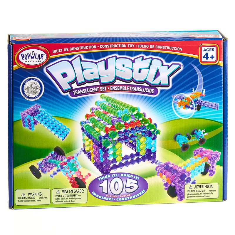 POPULAR PLAYTHINGS Playstix Translucent Set Construction Toy Building Blocks 105 Piece Kit