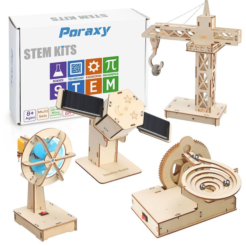 Poraxy 4 in 1 STEM Kits, STEM Projects for Kids Ages 8-12, Assembly 3D Wooden Puzzles, Building Toys, Educational Science Craft Model Kit, Gift for Boys and Girls 8 9 10 11 12 Years Old, Marble Run