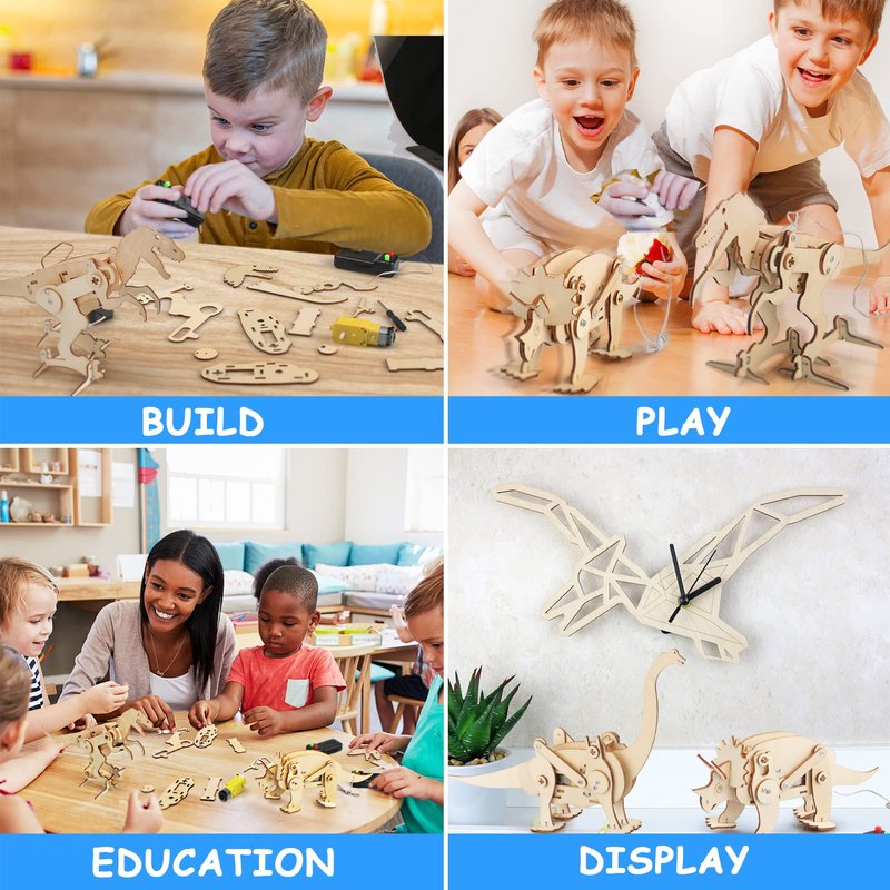 - Unique design: DIY STEM toys for ages 8-13 with wire controllers, allowing the dinosaur to move forward and backward. These wooden dinosaurs can be painted and decorated making them a unique craft kit.