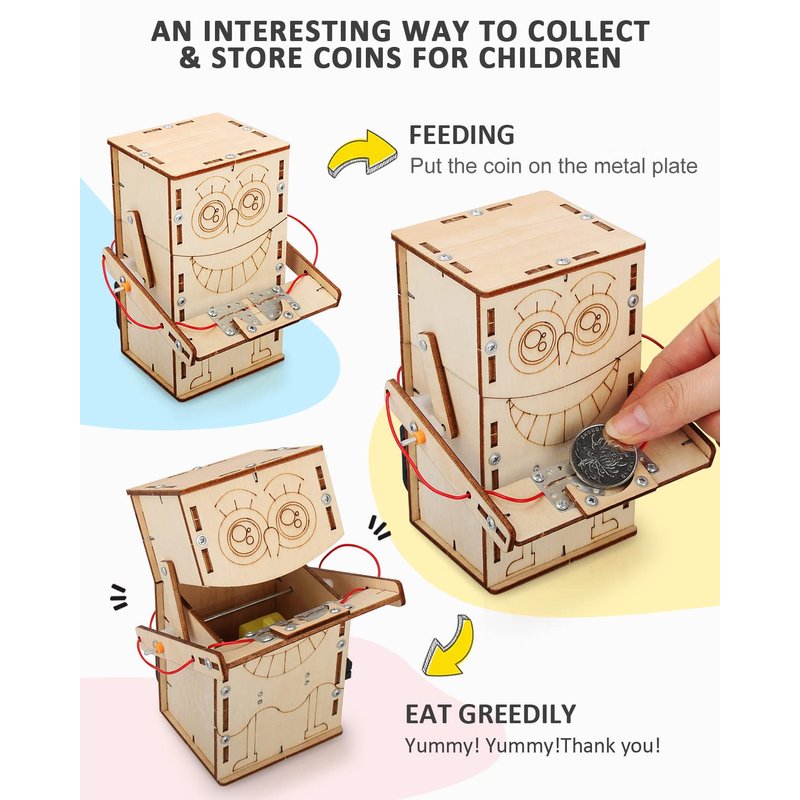 - 4 different kinds of models in one kit: The STEM toy kit comes with all of the parts you need to build electronic coin bank box,password lock case,music boxes. This funny DIY project is great gift for boys and girls age 8-12 years old.