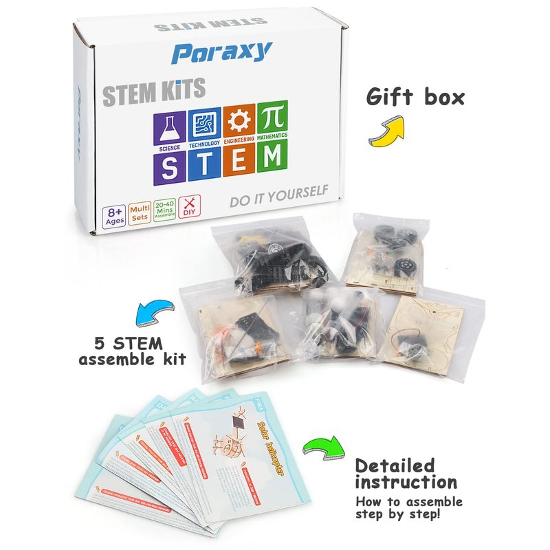 Poraxy 5 Set STEM Kits for Kids Ages 8-10, Model Car Kits, Wooden 3D Puzzles, Educational Science Experiment Kits, Building Toys for Ages 8-13, Gifts for Boys and Girls 7 8 9 10 11 12 13 Year Old