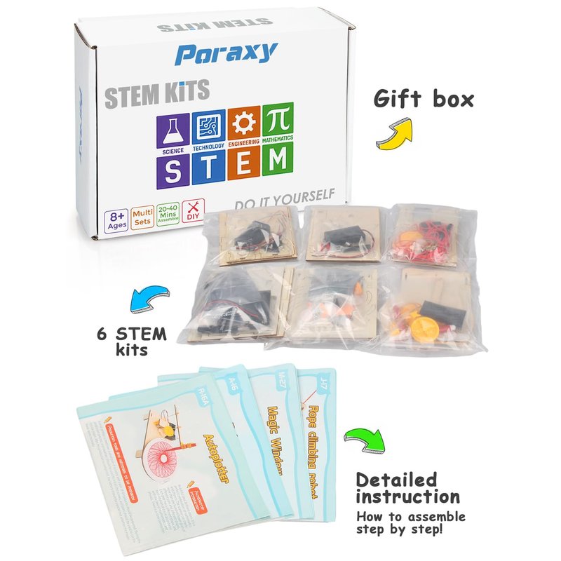 Poraxy 6 in 1 STEM Toys for Kids Ages 8-12, STEM Kits, 3D Wooden Puzzles, Educational Science Projects Building Model Kits, Birthday Gifts for Boys and Girls Ages 7 8 9 10 11 12 13 Years Old
