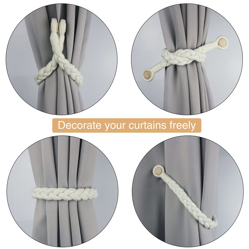- Our products do not need to use hooks, Will not damage your walls. when you are not using tie backs for curtains, you can attach it to any position of the curtain without worrying that magnetic curtain holdbacks will be lost for the next use. Attractive modern look of these rope curtain tiebacks, perfectly match with your bedroom, living room, office and so on, and meet daily use. Best as a gift or for self use