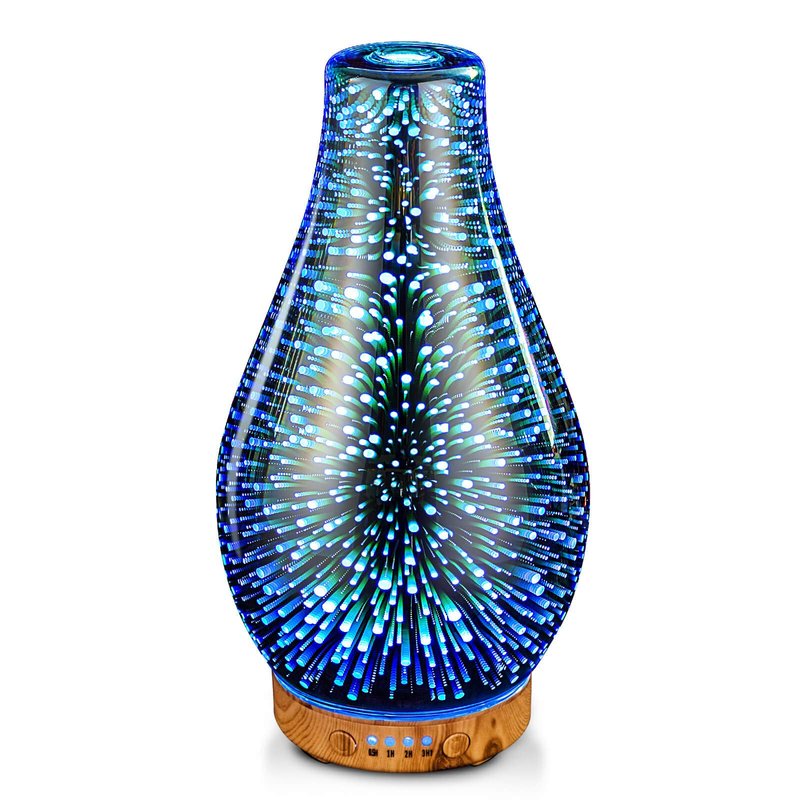 Porseme Essential Oil Diffuser 3D Glass Aromatherapy Ultrasonic Humidifier Cool Mist, Auto Shut-Off, Timer Setting, BPA Free for Home Office Hotel Yoga Gym Leisure SPA Gift 100ml