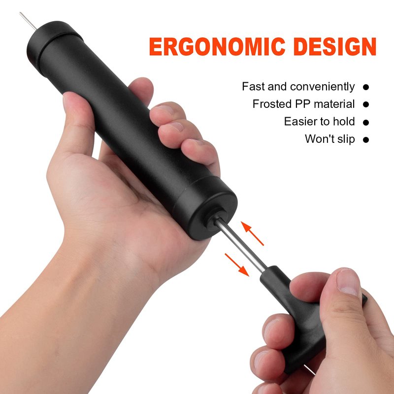 - Ergonomic Design: Ergonomic design of handle is more suitable to inflate balls comfortably. Tube surface is made of frosted PP material, making it easier to hold the pump and won't slip, so that you can pump air more fast and conveniently.