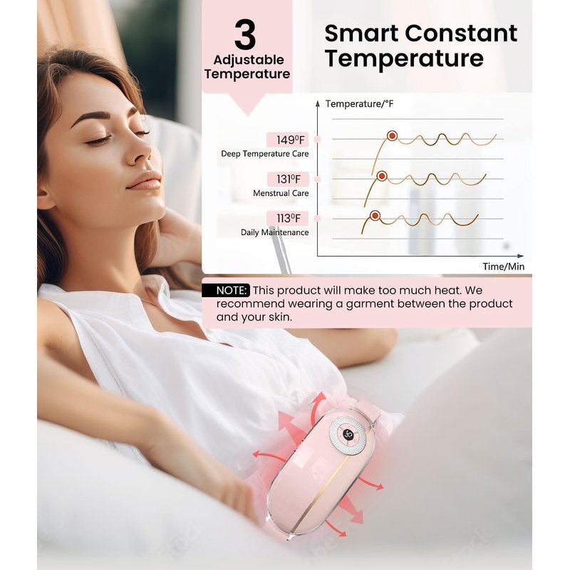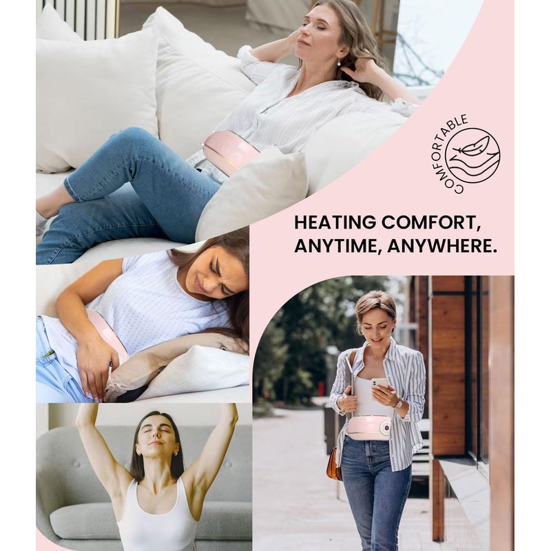 Portable Cordless Heating Pad,Heating Pad 5s Fast Heating,Heating Pads for Cramps with 3 Heat Levels and 3 Massage Modes,Menstrual Heating Pad for Women and Girl (Pink)
