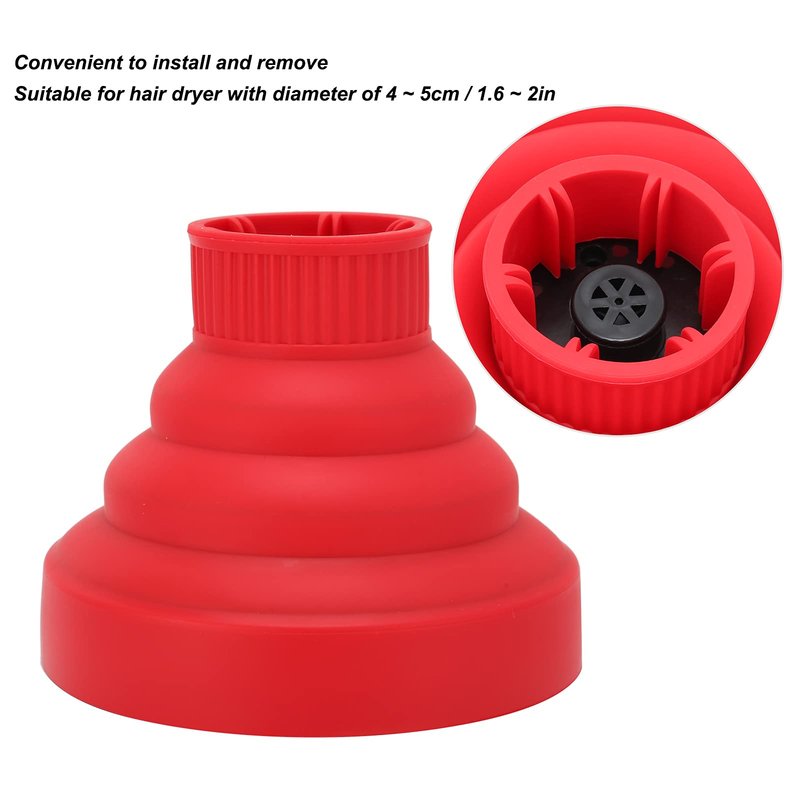 Portable Hair Dryer Diffuser, Universal Hair Dryer Diffuser Portable Travel Folding Hair Blow Dryer Diffuser Attachment for Hair Dryer with Diameter of 1.6 in to 2in (Red)