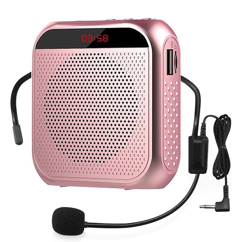 Portable Voice Amplifier with Wired Microphone Headset Rechargeable PA System Speaker Personal Microphone Speech Amplifier Power Amplifiers Loudspeaker for Teachers/Metting/Tour Guide (Rose Gold)