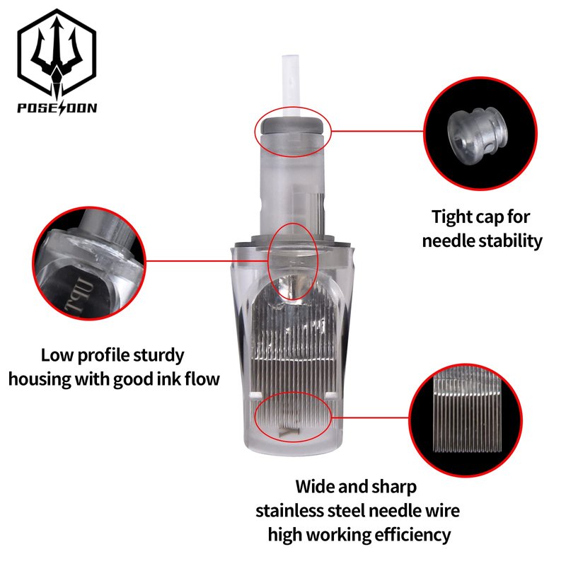 Poseidon 10Pcs Big Size Tattoo Cartridge Needles 0.35mm Standard Flat Mag 49 Magnum with Membrane Safety Cartridges (#12 Standard-1249 M1)