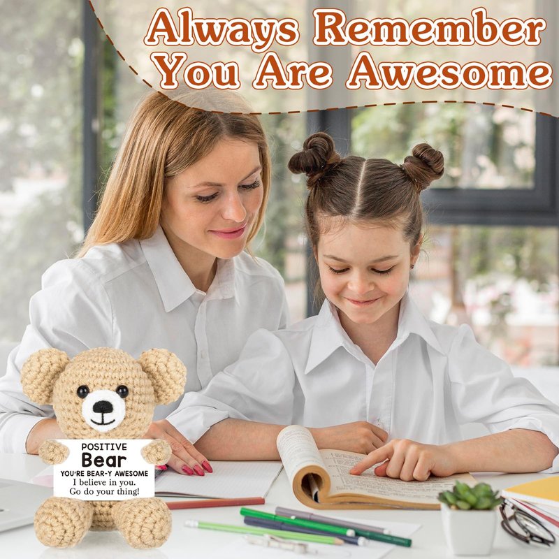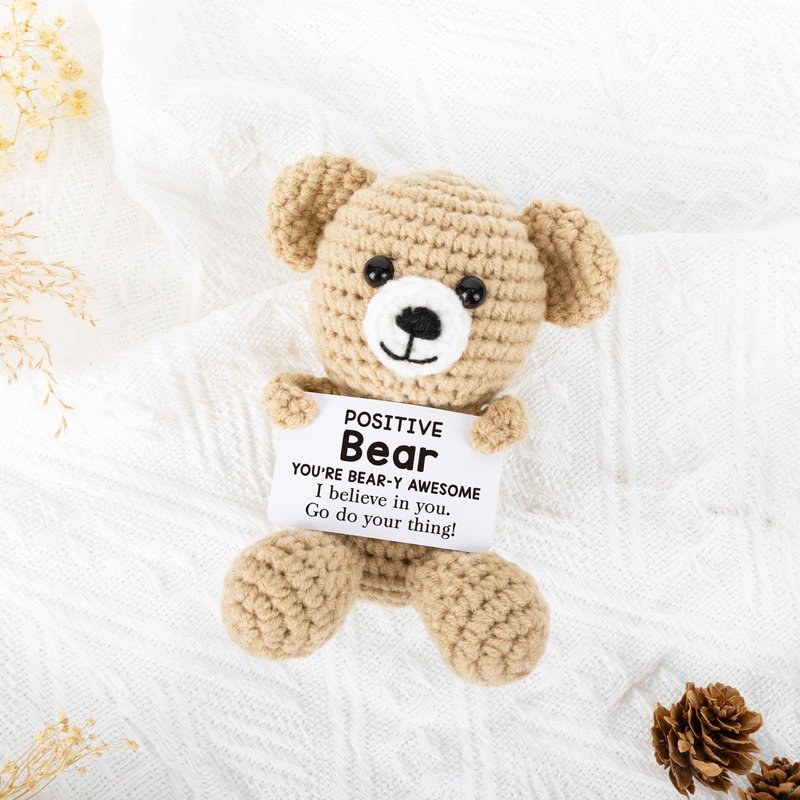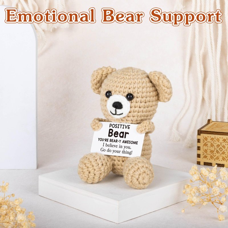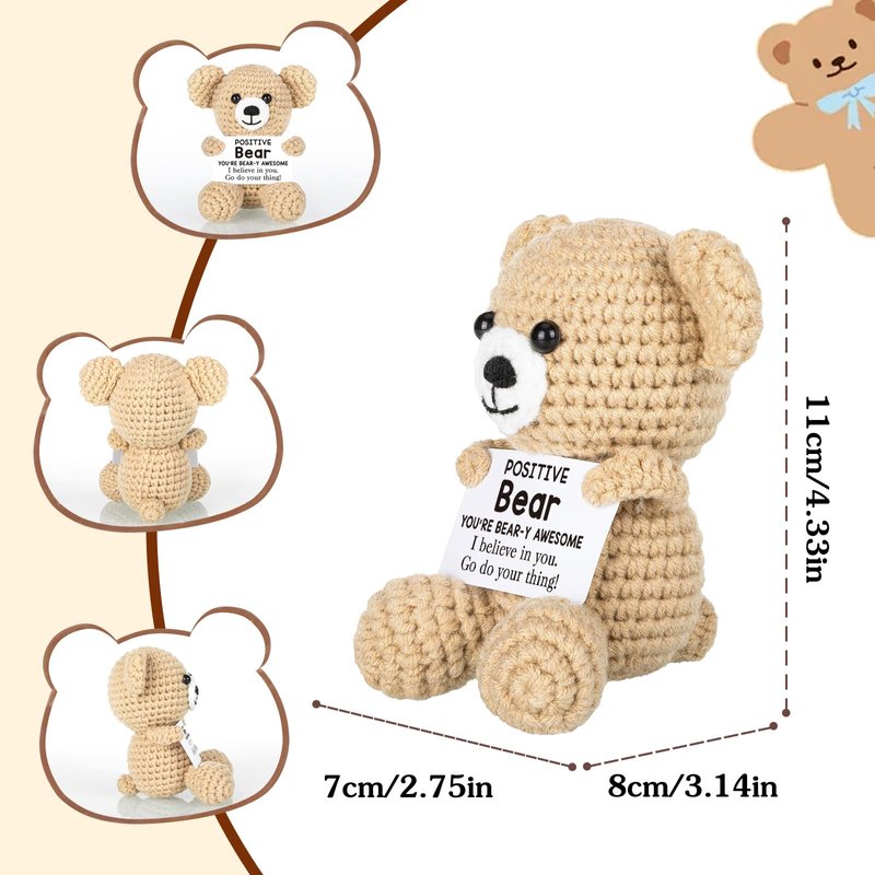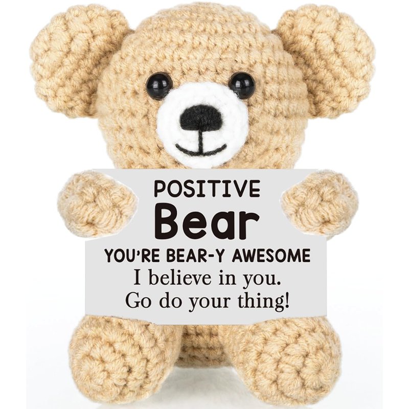 Positive Bear Crochet for Friend Birthday Gifts for Mom Aunt Dad Grandpa Daughter Son, Emotional Coworker Sister Brother Support Gifts Small Cute Stuff Things Inspirational Mental Health Gifts