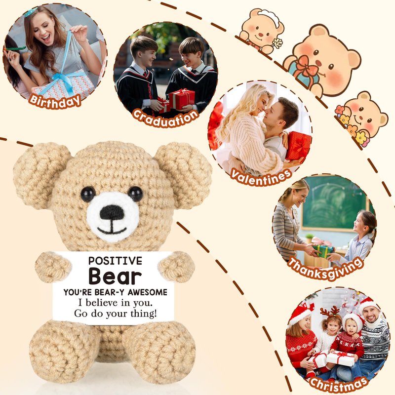 - Motivational Gifts for Women Men: The knitted bear is a heartwarming reminder of positive energy and faith; it's perfect for Christmas, birthdays, graduations, back to School, White Elephant gifts for friend and so on