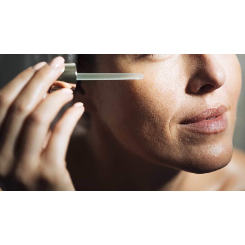 Apply 1-2 dosing of the eyedropper on the face and gently massage until total absorption.