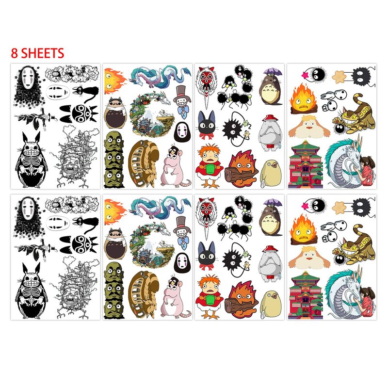 Pounchi Cute Cartoon Temporary Tattoos (8 Sheets) Gifts Anime Decor Cosplay Waterproof Temporary Tattoos Cartoon Stickers Party Favors Supplies for Teens Kids