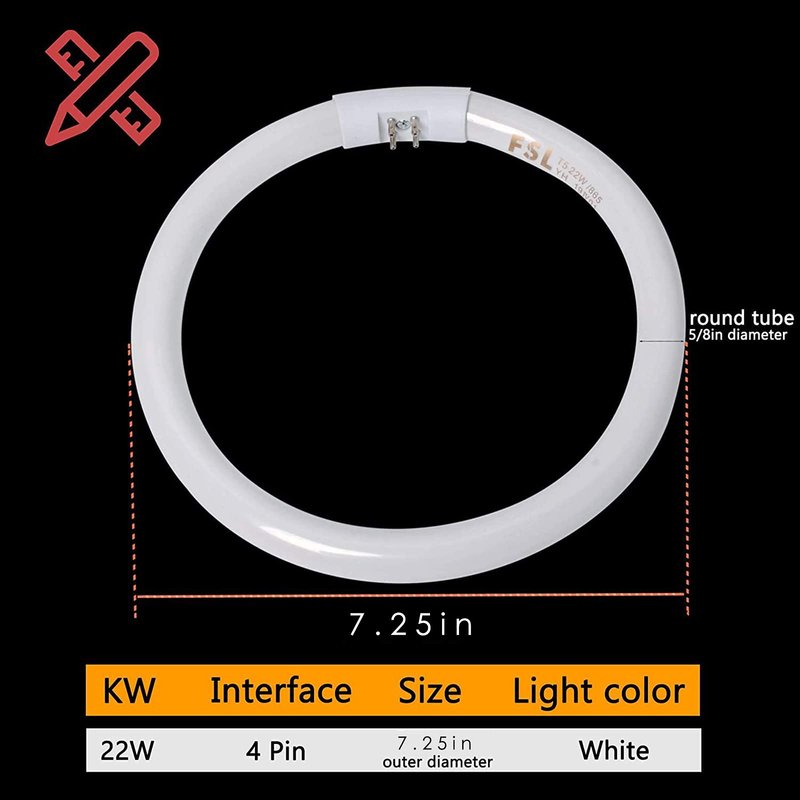 - 【Spec】: This is a 22W Circular Fluorescent Bulb ,The Lamp is 5/8 inch diameter round tube with a 4 Pin Connector with the Pins facing Inside the Lamp ,The Outside Diameter of the Lamp is 7.25 inch