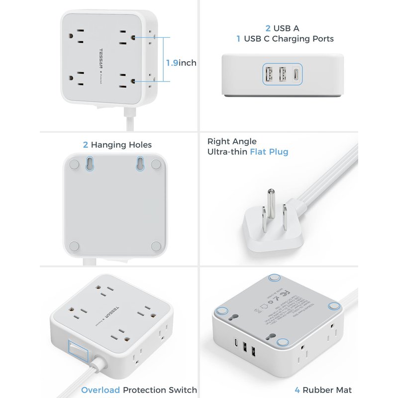 - Multiple Outlets: 8 widely spaced outlets provide ample space for multiple devices and adapters to be plugged in simultaneously without blocking adjacent outlets.3 USB chargers, including 1 USB C port, allow for convenient charging of smartphones, tablets, and other USB-powered devices without the need for additional adapters