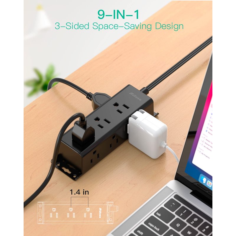 - 【3 Side Design & Wide Spaced Outlets】- 9 AC outlets with long space in between, fit all kinds of plugs and without blocking each other. Takes up less space on your desk or wall due to this compact 3-sided design, suitable for the home, office, and dorm room.