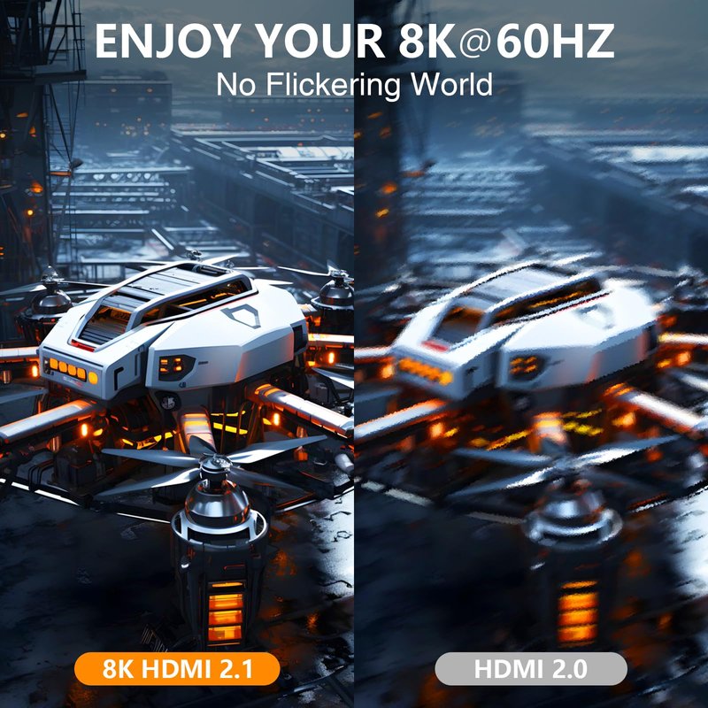 - 8K HDMI Cable: Male to Male HDMI Cable Supports 8K Video @ 60Hz, 2160P, 48 bit/px HDR color depth, bandwidth speed of up to 48GBps to meet the latest HDMI standards.