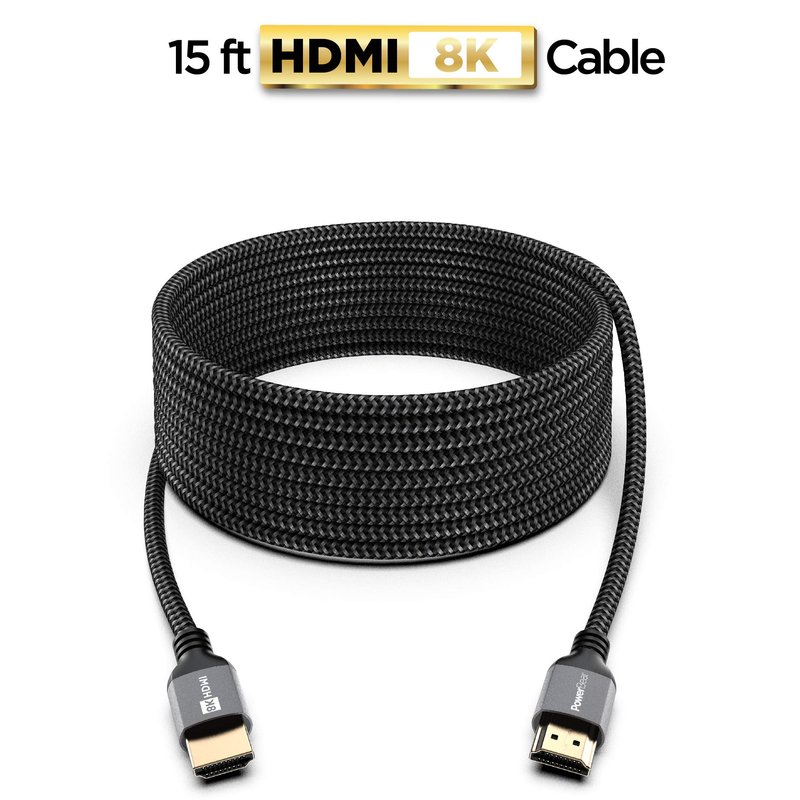 PowerBear 10K 8K HDMI 2.1 Cable 15 ft | 48Gbps High Speed 4K@120Hz Braided Cord 144Hz 8K@60Hz, eARC, Dynamic HDR 10,for Laptop, Monitor, PS5, PS4, Xbox One, Fire TV, Apple TV