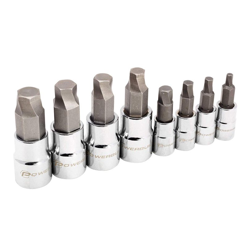 Powerbuilt 240094 8 Piece Zeon Metric Hex Bit Socket Set - with use for Damaged Fasteners, Standard, Rusted, Rounded Bolts, Size from 3mm to 10mm