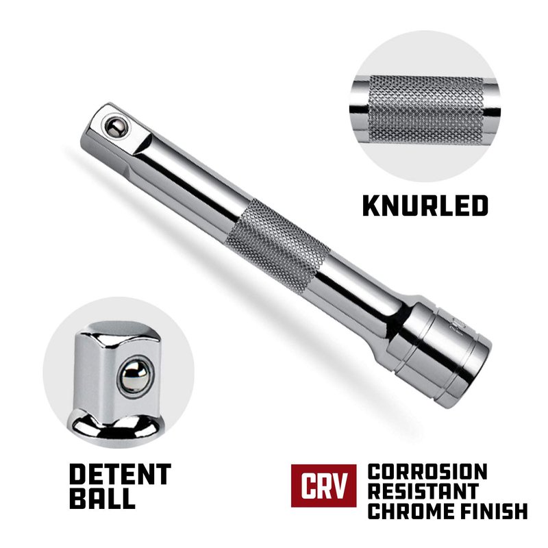 Powerbuilt 4 Piece Extension Bar Set, 3/8 Inch Drive, Socket Extender Bars, 1-3/4, 3, 6, and 8 Inch, Detent Ball, Grease Rings, Non-Slip Grip - 640844