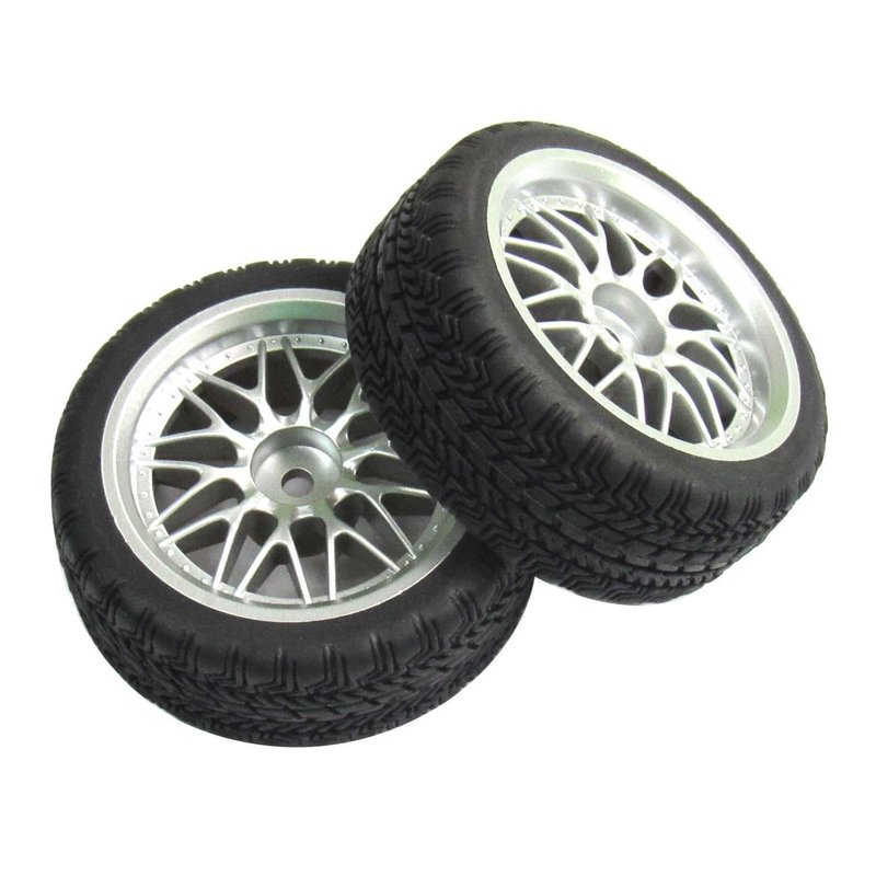 powerday 12mm Hub Wheel Rims Rubber Tires for RC 1/10 on-Road Touring Racing Car A for RC 1: 10 on-Road Racing car, Drift, Touring car (4pcs)