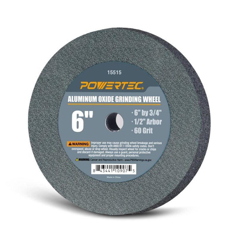 POWERTEC 15515V Bench and Pedestal Grinding Wheels, 6 Inch x 3/4 Inch, 1/2 Arbor, 60 Grit, Aluminum Oxide Bench Grinder Wheel for Bench Grinder, 1 Pack