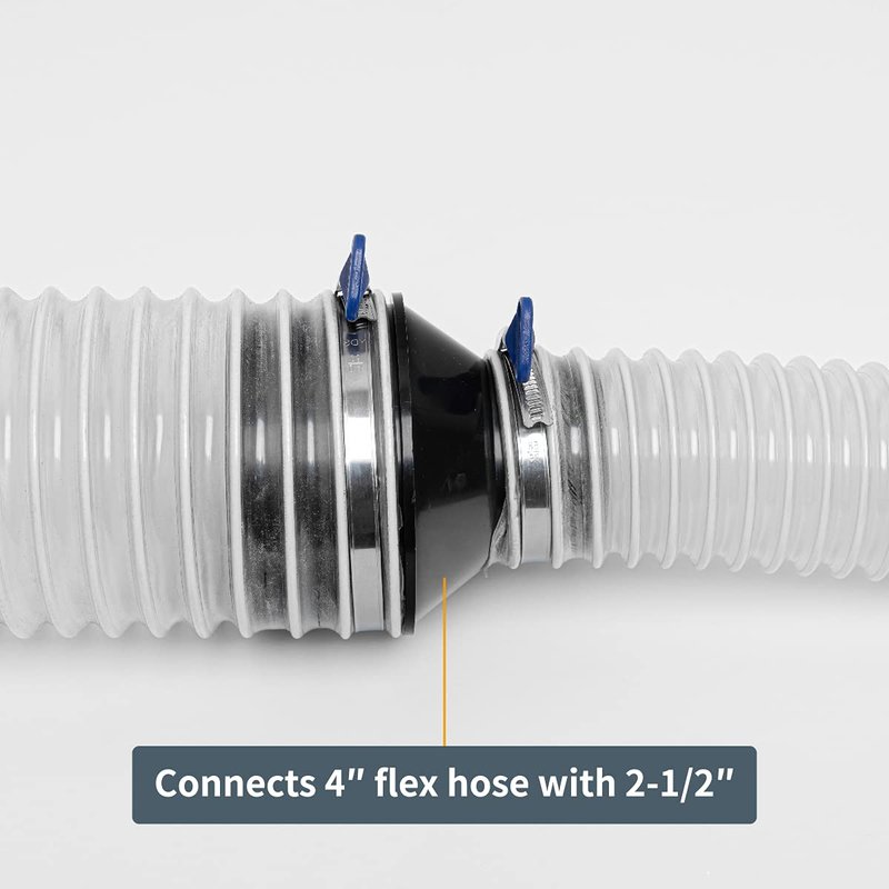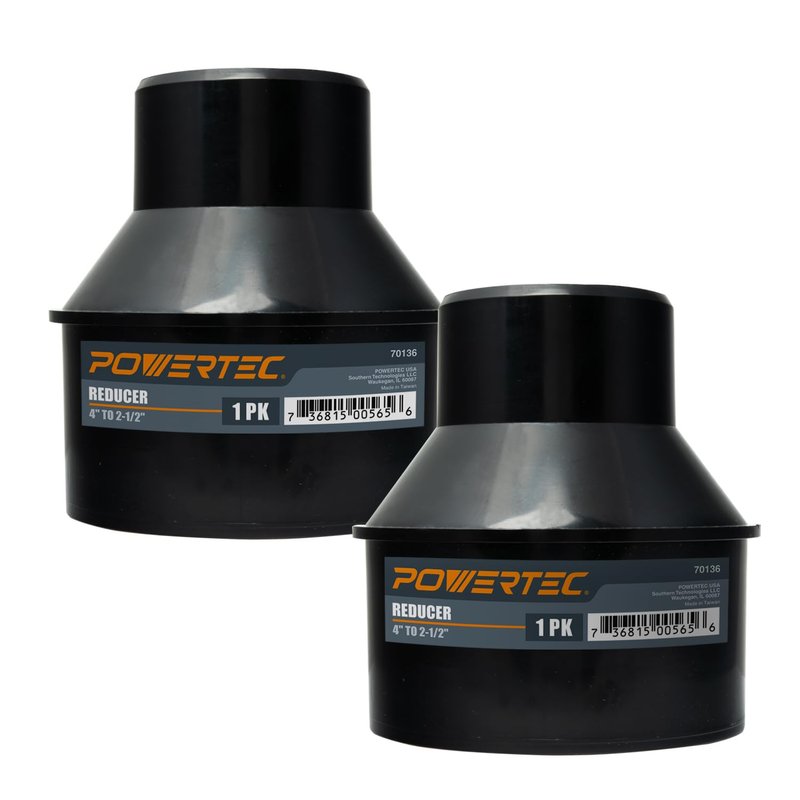- PLEASE NOTE: This cone reducer is specifically designed to work exclusively with 4” and 2-1/2” hoses | It is NOT intended to fit or accommodate a 2-1/2” OD or 4” OD dust collection equipment port directly (which would require POWERTEC 70149 or 70148 Flex Cuffs)