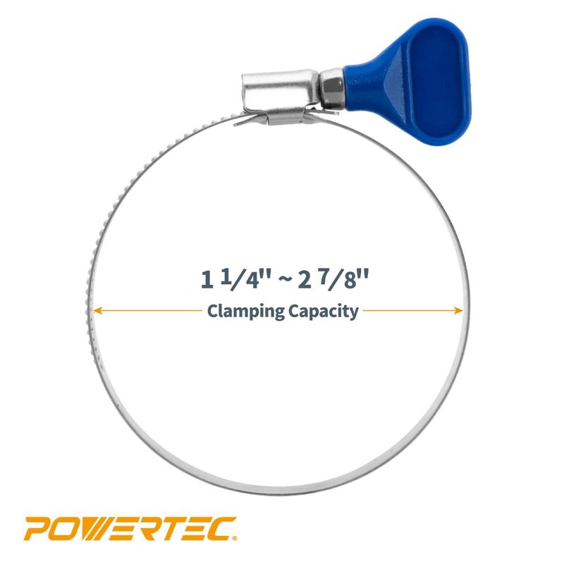 POWERTEC 70223-P2 2-1/2 Inch Right Hand Keyed Bridge Hose Clamp, Thumb Screw Key Adjustable Stainless Steel Hose Clamps for Dust Collection, Dust Collector and Dryer Vent Hose, 10 pack