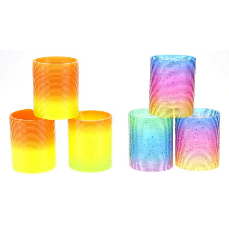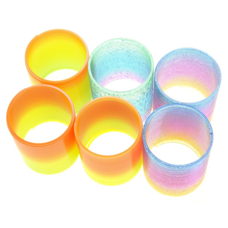 A classic novelty toy that anyone can enjoy, perfect for giving out as gifts to party guests. A great looking multi-color blend on each spring toy. Colors include orange, green, yellow, purple, & blue. Children and adults will love playing with these colorful spring toys. An endless amount of entertainment watching these springs hop down a staircase, or just simply in your hands. These toys are great for goodie bags and even better as Christmas stuffer.