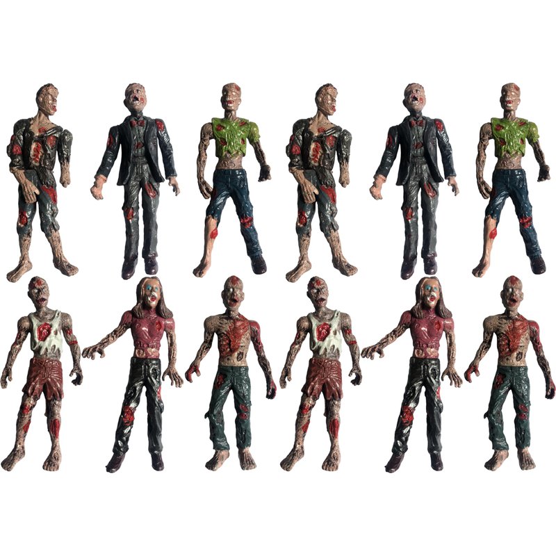 Zombie action figure playset pack comes with 12 zombie figures. All zombies have moveable joints so they can be used by your child's imagination.