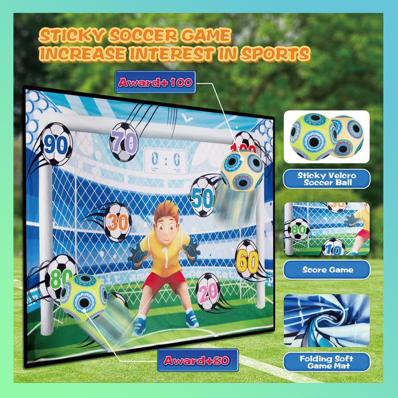 - 【Realistic Soccer Experience】Our Soccer ball game mat set is of great help on cultivate boys girls interest on soccer! They can master the essentials and skills of playing soccer through fun games by kick the sticky Velcro rubber balls to the target on the soccer mat. With bright colors and realistic designs, this soccer toys is perfect for kids who love soccer and want to improve their game both indoors and outdoors