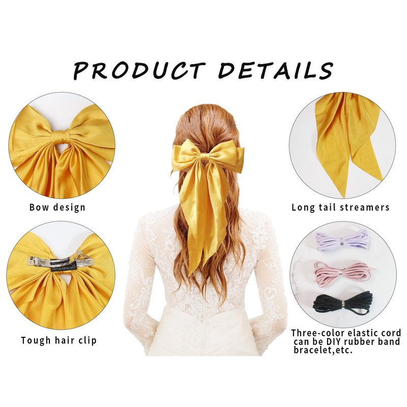 - Cute Hair Accessories: Silky Satin Hair Bows are charming hair clips,Stretch thread can be made into DIY accessories,thoughtfully designed to suit various hairstyles and age groups. Whether it's a cute ponytail or an elegant updo, these hair clips add a unique touch.