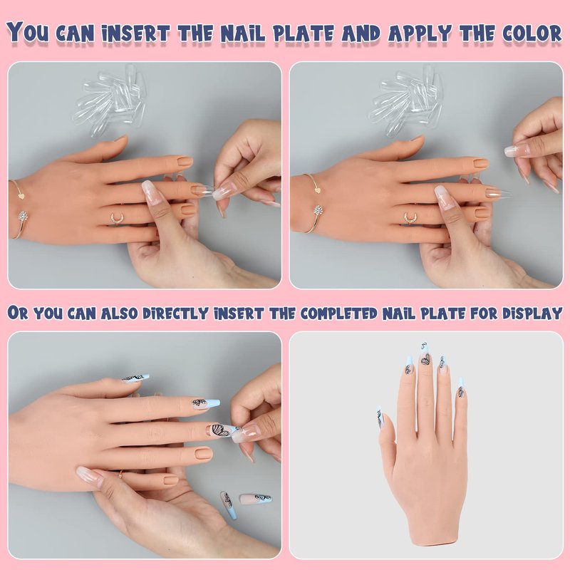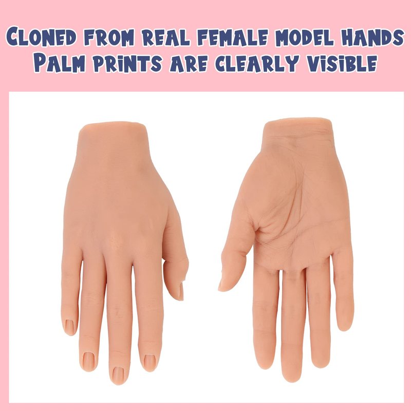 • 【Reusable Multi-function Nail Training Hand】Realistic nail practice hands is made of soft silicone, non toxic, safe to use, easy to clean and reusable. Nail tech practice hand is very suitable for manicure practice, also suit for tattoo practice, jewelry ring bracelet watch display, hand massage practicing, stage finger props and Halloween decorations.