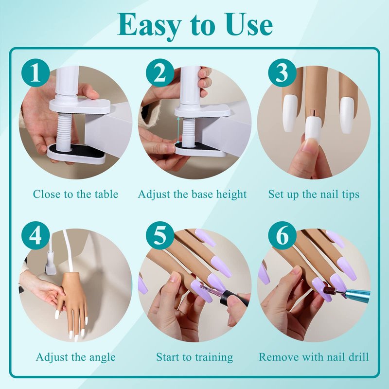 - Easy to Use: This nail practice hand comes with a clip that can be placed on tables of different heights. The long arm is fleaxible that you can move it freely, making it easy to practice and perfect your nail art craft.