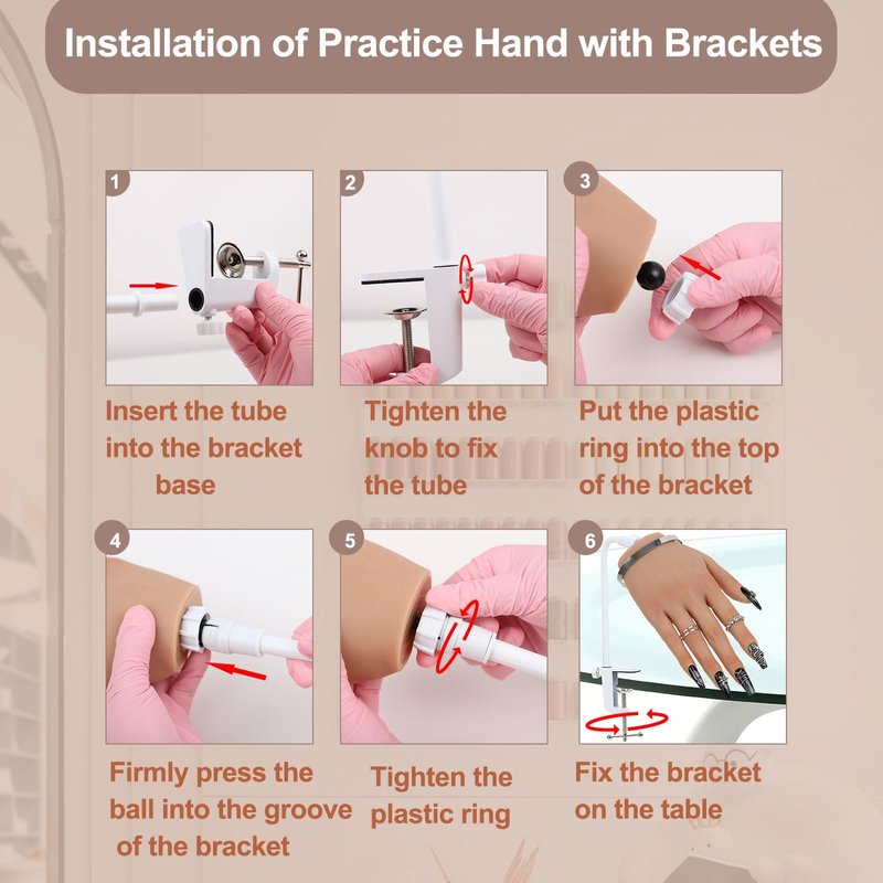 - [New Base Upgrade Design]The new base is more suitable for various manicure tables and will not pop out,easy to plug and play,Just adjust and tighten the bolts at the end of the table clamp.This stabilizes the position and angle of the prosthetic hand, greatly improve the portability of the manicure,super convenient