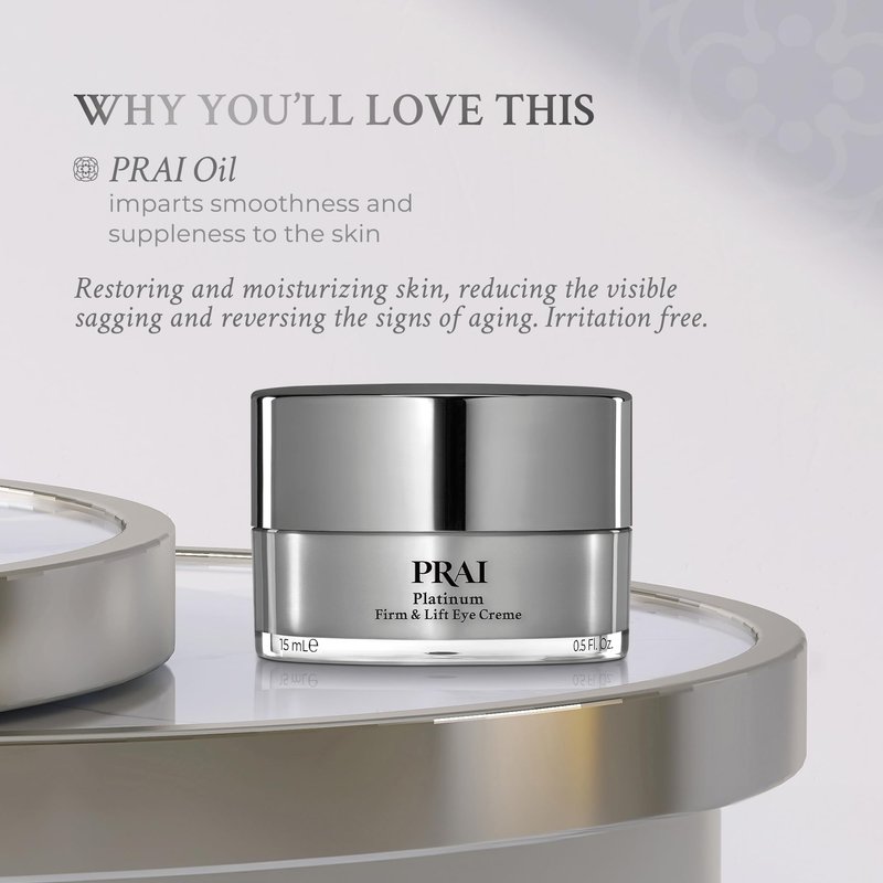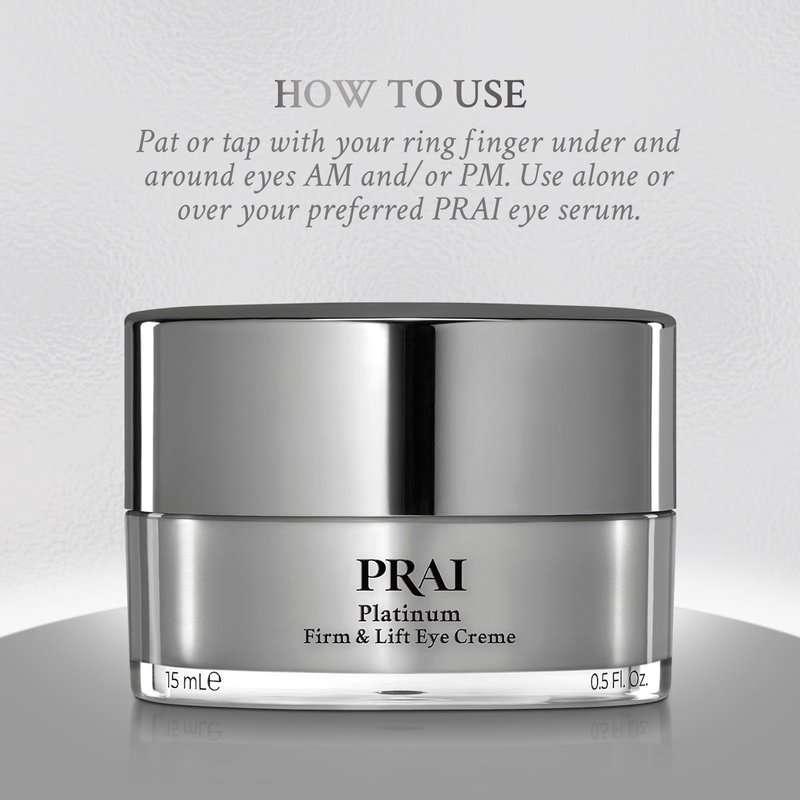 - For Better Results - To quickly diminish the signs of aging in and around the eye area, use this eye cream as well as PRAI Beauty Platinum Firm & Lift Eye Serum