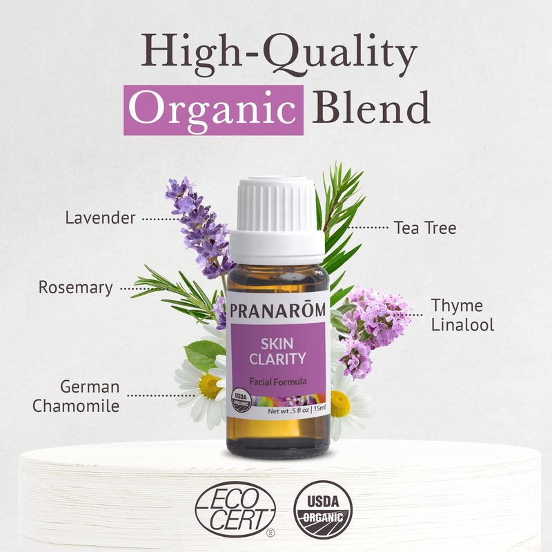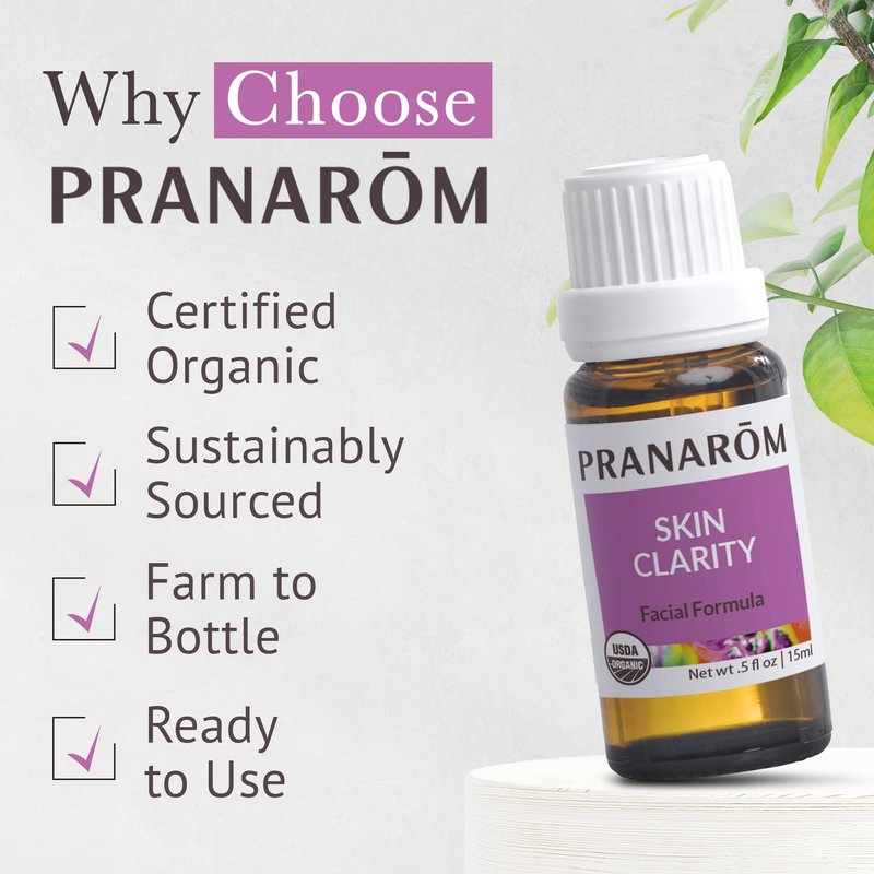 - 100% PURE ESSENTIAL OIL - This Skin Clarity essential oil blend is distilled and pressed from solely sustainably harvested organic plants. All of Pranarom's products are sourced from organic farms from across the globe to provide only the finest, organic ingredients.
