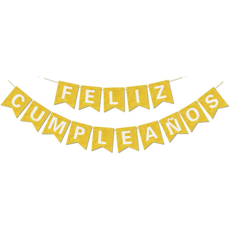 Pre-Strung Happy Birthday Banner - NO DIY - with Shiny Letters Glitter FELIZ CUMPLEAÑOS DECORATIONS Banner for Gold Birthday Party Decorations and Supplies