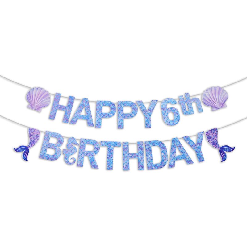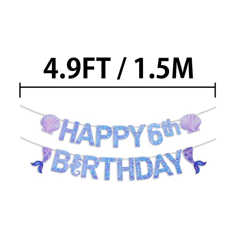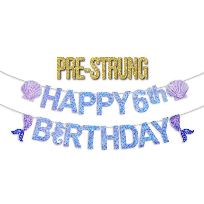 Pre-Strung Mermaid 6th Birthday Banner for Mermaid Birthday Decorations - NO DIY - 6th Mermaid Party Decorations,6th Mermaid Party Supplies(3rd-7th)